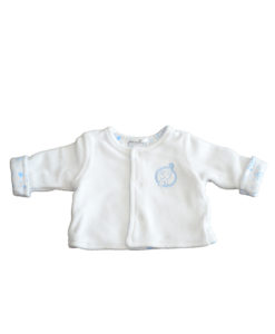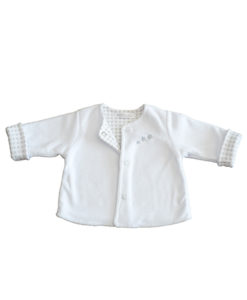 Chaqueta de tejido tundosado blanco con forro interior 100% algodón estampado en color gris, rosa o azul.